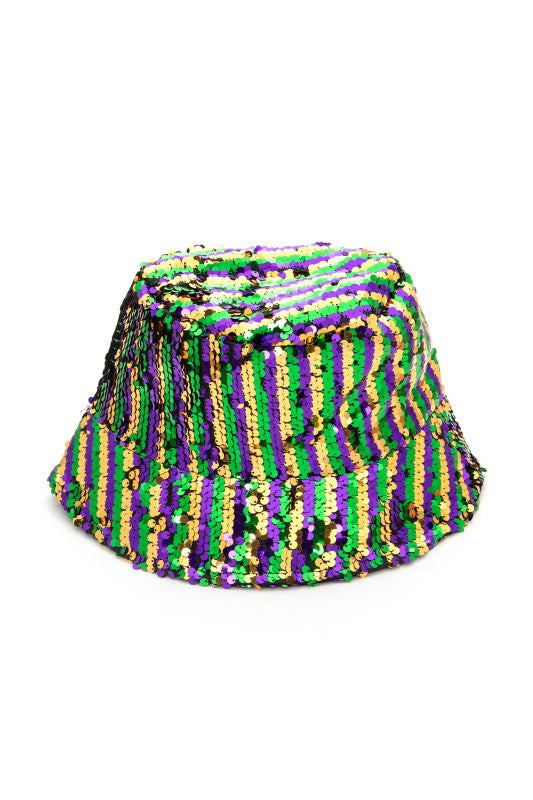 Celebrate in style with this show-stopping Mardi Gras Sequins Bucket Hat. Covered in shimmering sequins that catch the light with every move, this playful piece brings instant festive energy to any outfit. Perfect for parades, parties, or making a bold fashion statement, it's the ultimate accessory for those ready to embrace the spirit of Mardi Gras. Lightweight and fun, this bucket hat keeps the party going all season long.
