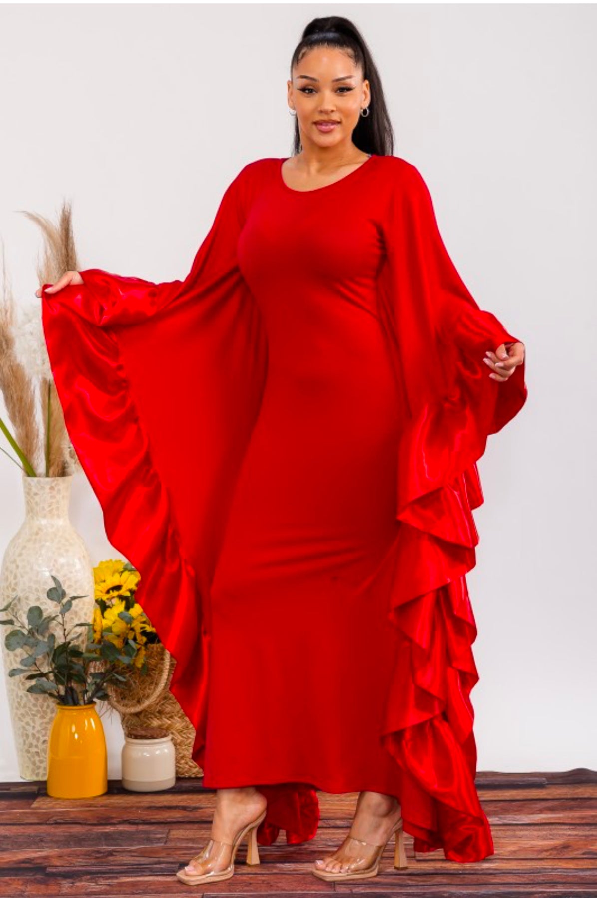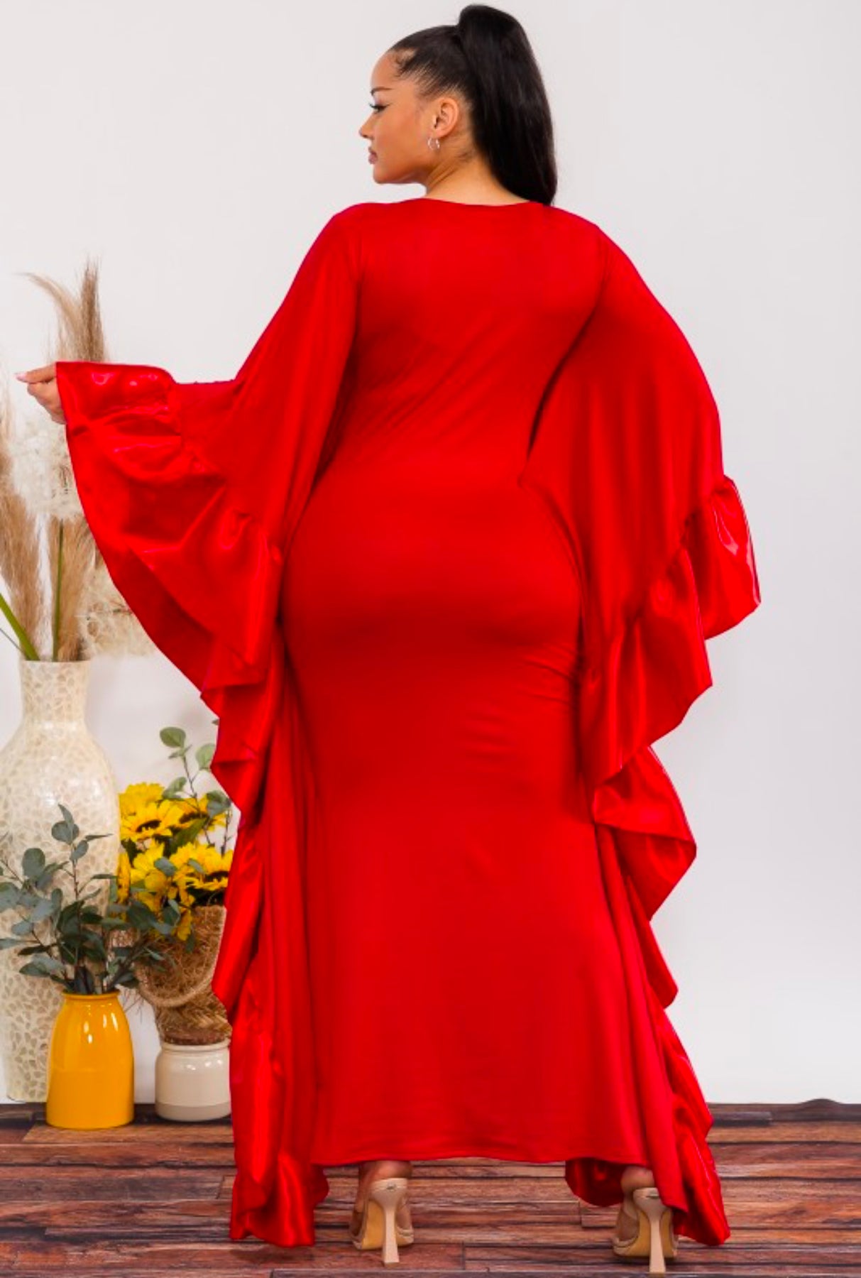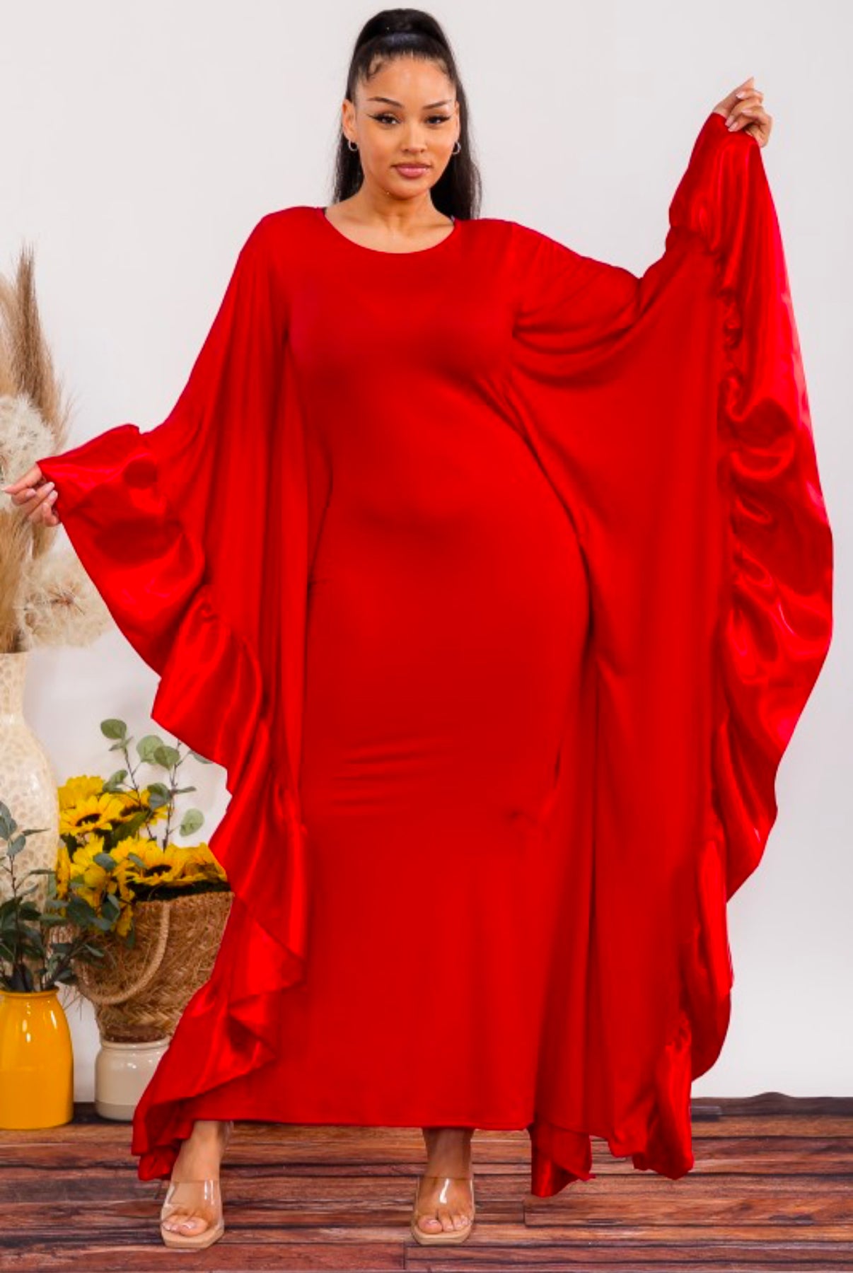 This red Batwing Maxi Dress offers a bold and elegant look for any occasion.