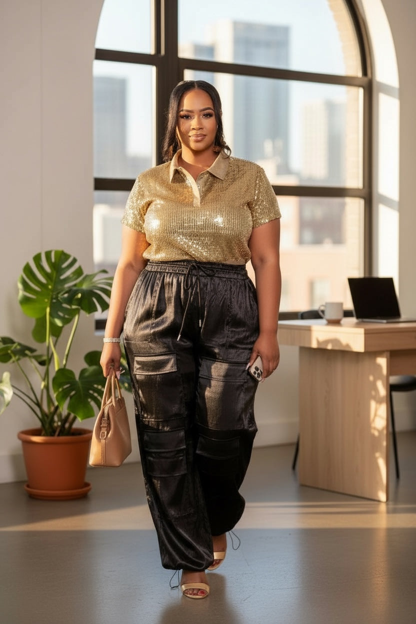 Elevate your style with our plus size Gold sequin top! Make a statement with bold color and shimmering sequins.