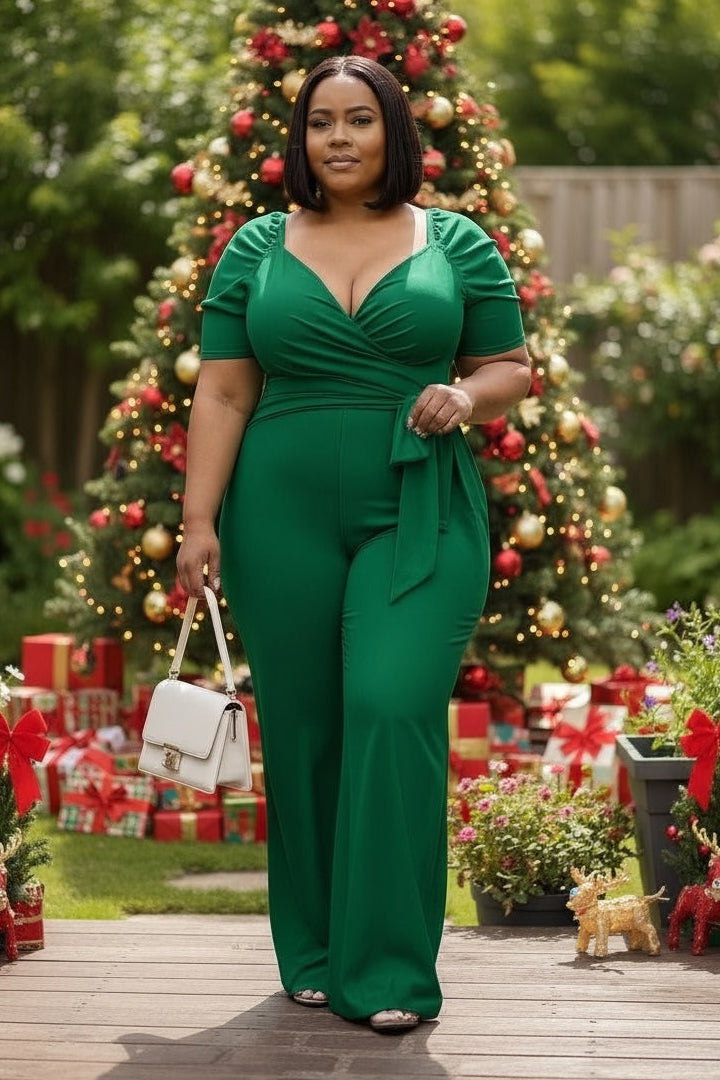 This elegant Curvy Style Gucci Green Jumpsuit features a sweetheart neckline and keyhole back for a flirty touch. The attached belt accentuates your curves, making it a flattering and stylish choice. Perfect for any occasion, this jumpsuit is a must-have for your wardrobe.